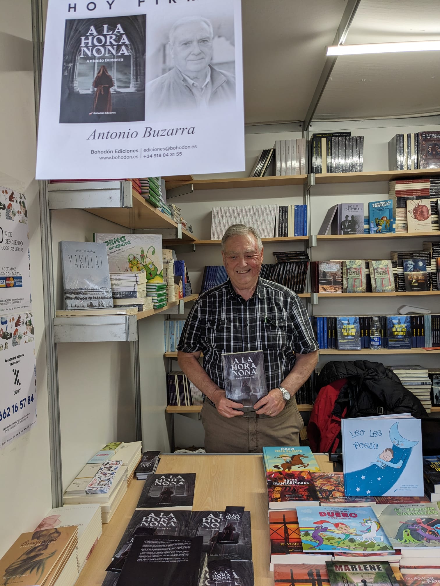 Hola amigos, este sábado estuve en la feria del libro de Valencia, donde me lo pasé estupendamente con Jose Luis y Esther de Ediciones Boodón, que me atendieron muy bien, gracias., y además hasta vendí ejemplares de mi libro «A la hora nona» Hasta la próxima.